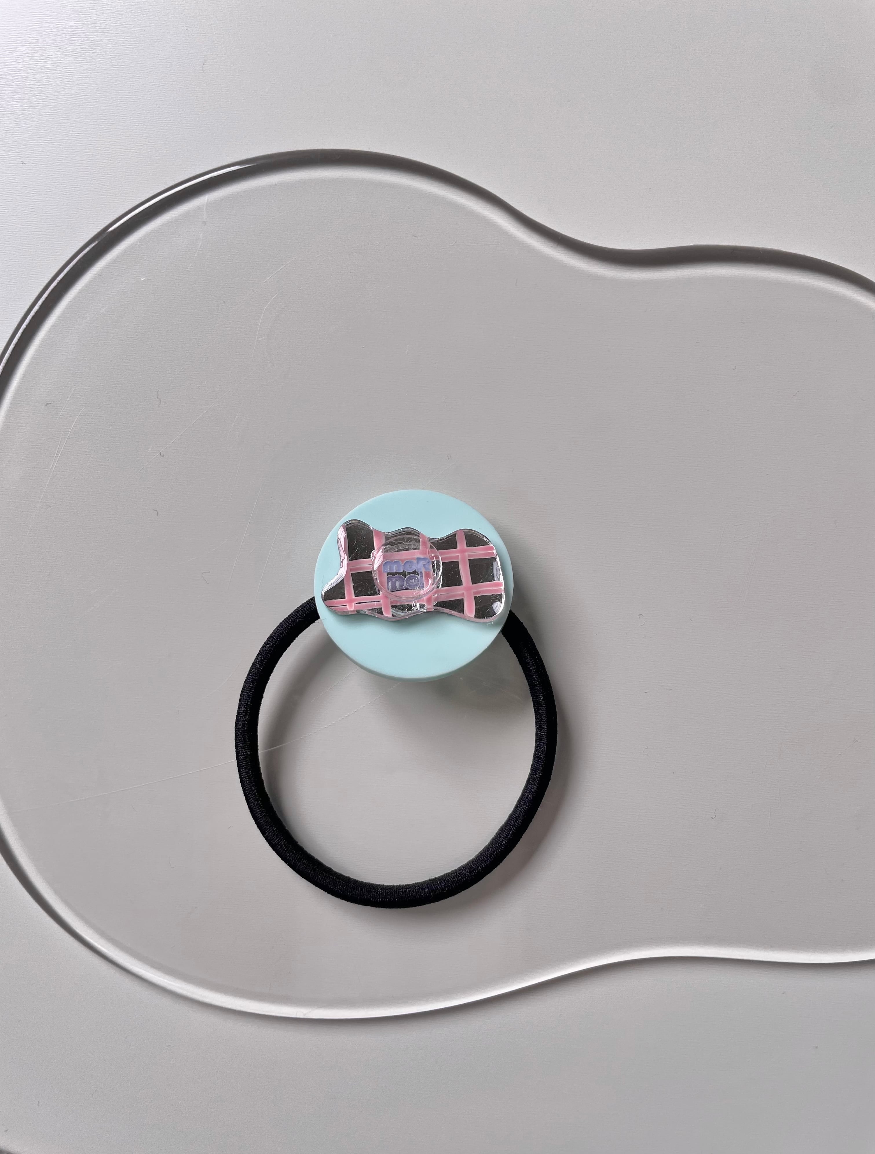 ミラーに描かれたピンクのタイル柄が印象的なかわいいヘアゴムです。